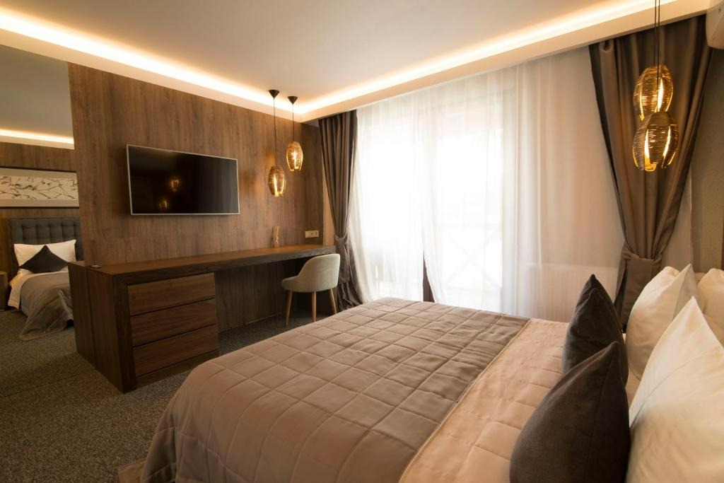 - просторные номера с кондиционером, мини-баром и кофемашиной;